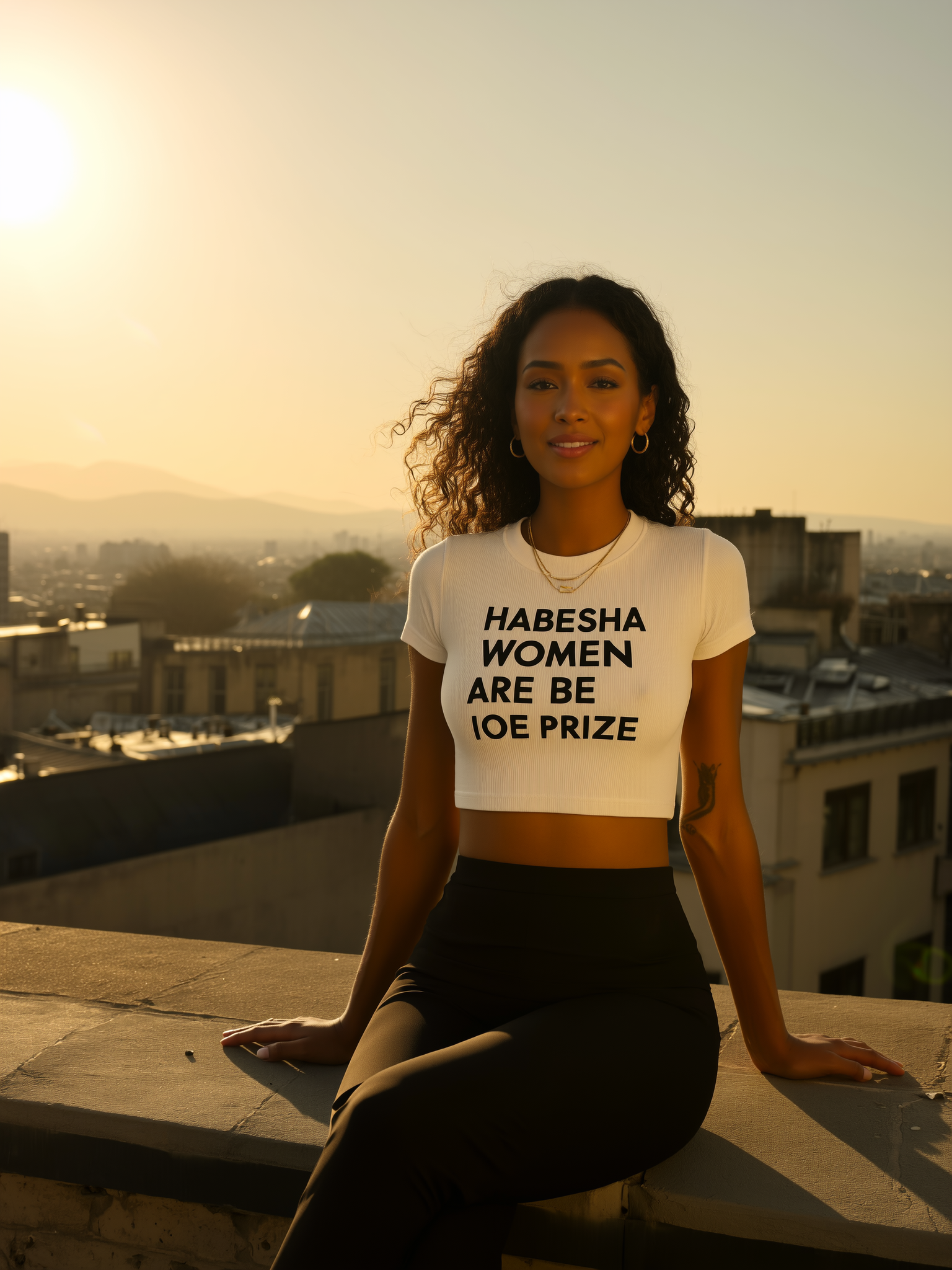 Turn heads and rep your roots with this unapologetic Habesha crop—where culture meets confidence. Whether you're rocking "ha(BAE)sha" or reminding the world that "Habesha Women Are the Prize," this tee brings the energy.
